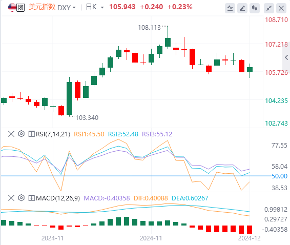 美元指数本周大部分时间都在低端度过,周一美指涨至一周高点106.72,随后开始震荡回落。周五,高于预期的非农数据公布后,美联储12月降息的预期升温,美元短线走低后稍微回升,本周收于106整数关口下方。