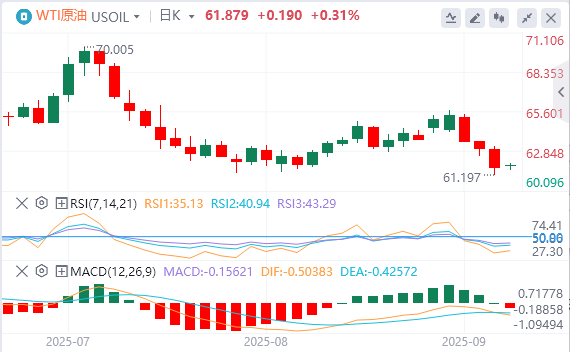 9月8日,北京时间周五亚市早盘,美元指数徘徊在97.90附近。上周五,非农数据大爆冷,美元指数短线急挫并接近抹去上周全部涨幅,最终收跌0.54%,报97.74。基准的10年期美债收益率收报4.0770%,2年期美债收益率收报3.5190%。现货黄金再创新高,最高短暂突破3600关口,收于3586美元/盎司,最终收涨1.12%,为连续第三周收涨;现货白银收涨0.82%,报40.97美元/盎司。欧佩克+进一步增产的前景加剧了供应过剩的担忧,国际油价连续三天下跌。WTI原油全日维持下跌趋势,失守62美元,最终收跌2.61%,报61.69美元/桶;布伦特原油最终收跌1.81%,报65.66美元/桶。