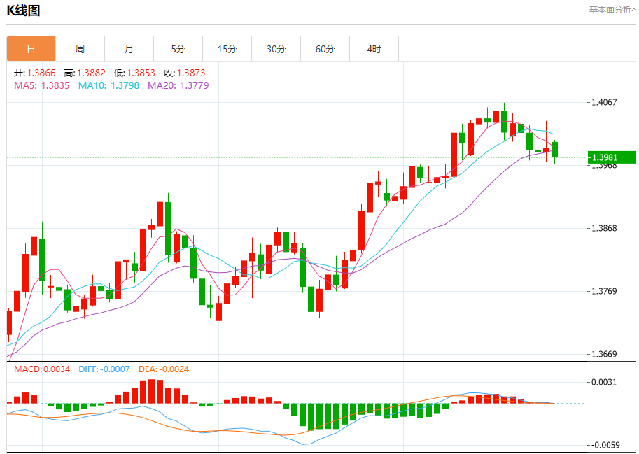 截至目前,美元/加元下跌0.10%,报1.3983。