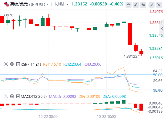 英国国家统计局(ONS)周三在欧洲早间报告称,以消费者价格指数(CPI)变化衡量的年度通胀率在9月份稳定在3.8%。该读数低于市场预期的4%。按月计算,CPI在8月份上涨0.3%后持平。CPI数据公布后,英镑/美元仍面临温和的看跌压力,并在1.3350下方的负值区域交易。欧元/英镑当日最后上涨近0.4%至0.8710,反映了英镑的普遍疲软。