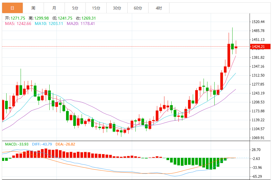 今日最新钯金行情:1421.18