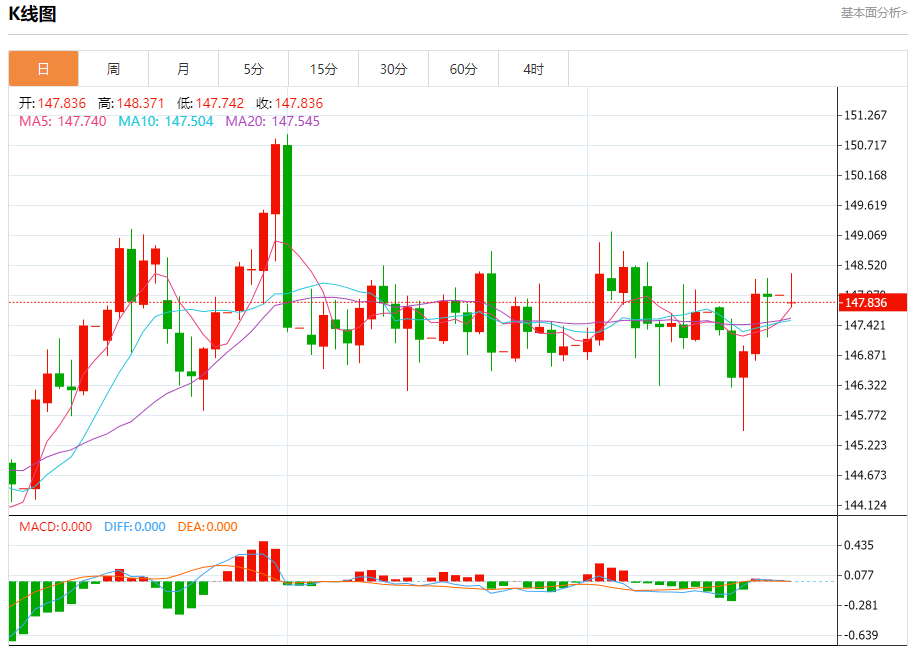 今日周一,欧元兑美元报1.1787,涨幅0.38%;英镑兑美元报1.3510,涨幅0.30%;美元兑日元报147.835,跌幅0.10%。
