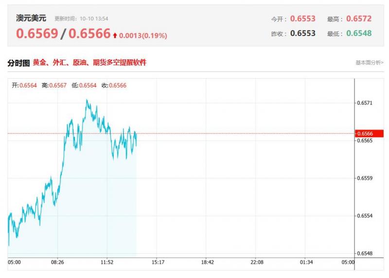 澳元兑美元今日汇率最高0.6569 ,最低0.6566 ,涨跌0.0013 ,涨跌幅0.19% 。