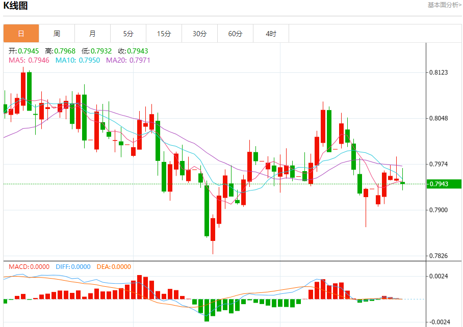 今日周五,澳元兑美元报0.6519,涨幅0.12%;美元兑加元报1.4016,涨幅0.16%;美元兑瑞郎报0.7943,跌幅0.11%。
