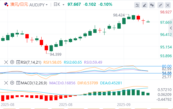 9月18日,周四亚市盘中,澳元/日元交叉盘下行至97.65附近。澳大利亚8月就业报告发布后,澳元兑日元走弱。所有人的目光都将集中在周五晚些时候日本央行(BoJ)的利率决定上。此外,日本全国消费者价格指数(CPI)数据也将公布。