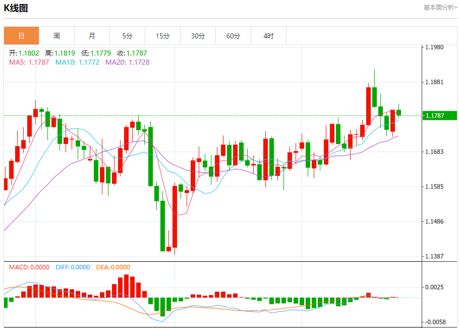 欧元/美元:截止北京时间20:23,欧元/美元下跌,现报1.1788,跌幅0.13%。纽市盘前,(欧元兑美元)的价格在最后一个盘中交易中下跌,以收集其之前上涨的收益,试图获得可能有助于其恢复和再次上涨的看涨势头,此外,该对货币还试图在相对强度指标上摆脱一些明显的超买状态,特别是在EMA50上方交易期间,随着负面信号的出现,加强了短期主要看涨趋势的稳定性,其沿着趋势线移动。