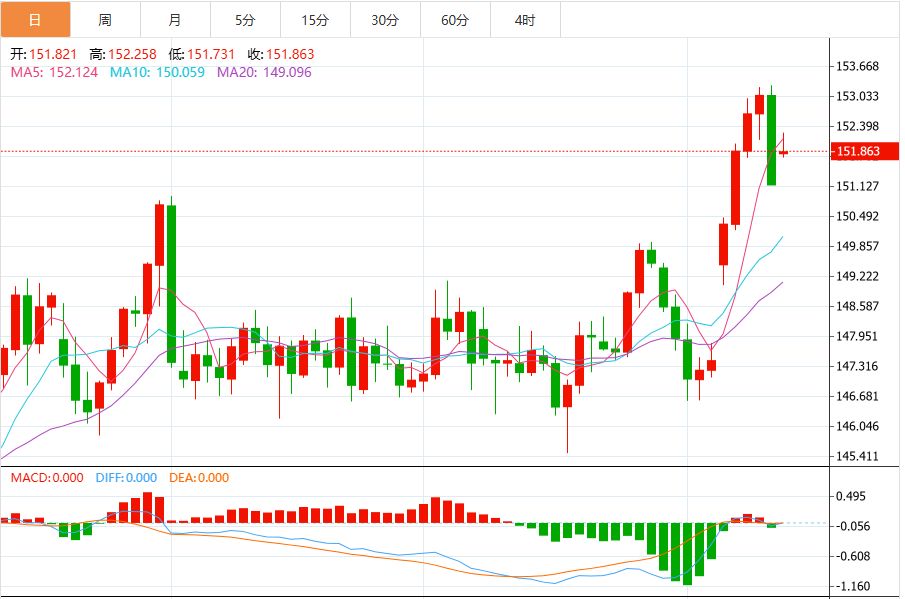 下行方面,任何技术性回调至152.60-152.55区间附近时,都可能被视为买入机会。这将有助于在152.00整数关口附近构筑下行支撑。
